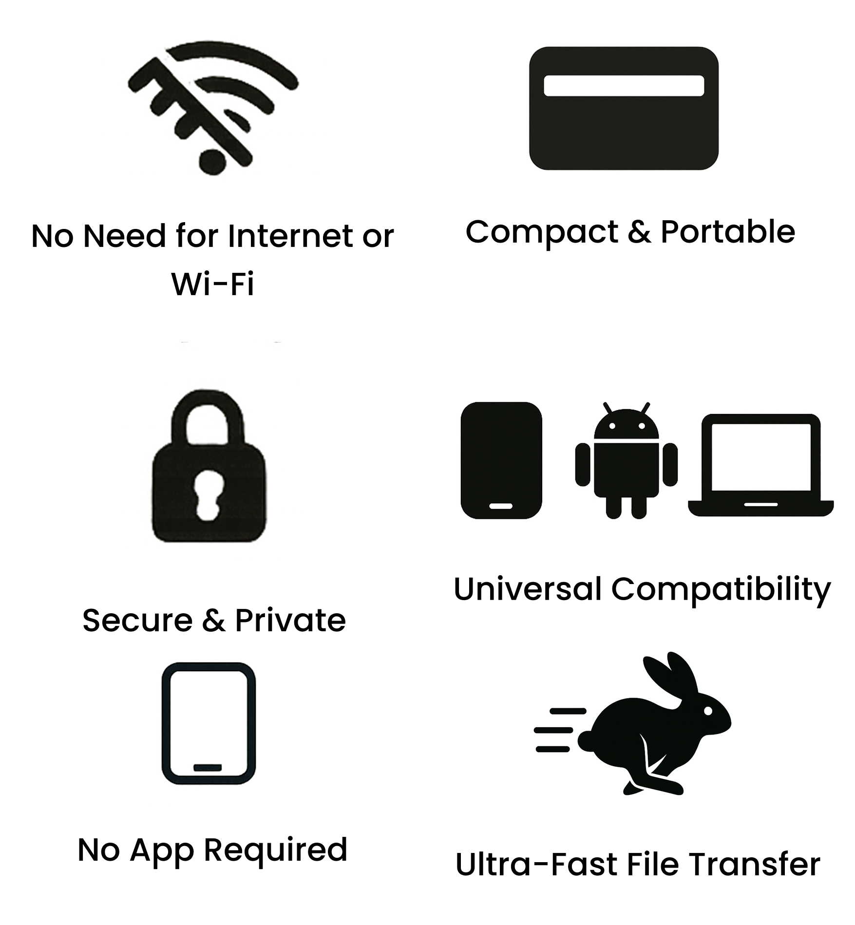 No internet needed. ZinCard creates a local Wi-Fi Direct connection to transfer files securely and offline.